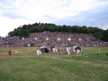 NOVICE 26. junij 2009 Spektakel v slikah Zanimanje za dogajanje na prireditvi je še vedno veliko. Zato smo za vse, ki si želite podrobneje ogledati, kaj se je na spektaklu odvijalo, izbrali zanimive fotografije, na katerih si lahko ogledate »Rimljane« v akciji. Med nastopajočimi in gledalci boste najverjetneje prepoznali kakšnega prijatelja ali znanca, sorodnika ali pa celo sami sebe. Podoživite dogajanje še v slikah. |