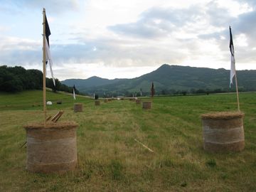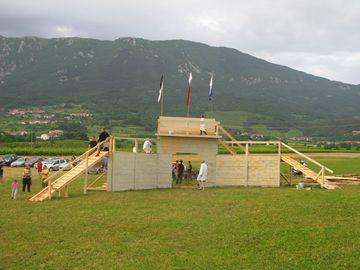 NOVICE 21. junij 2010 Prizorišče Spektakel se bo odvijal ravno na poljanah, kjer se je po vsej verjetnosti pred šestnajstimi stoletji odvijala Bitka pri Mrzli reki. Samo prizorišče je kot naročeno za takšen dogodek, saj ima obliko naravnega amfiteatra, ki nudi čudovit pogled na dogajanje. Letos bomo tudi obogatili scenografijo, katere del je razviden tudi na spodnjih fotografijah. Povečali smo tudi prostor za gledalce, s čimer se bomo izognili preveliki gneči. Poskrbeli smo tudi za več šankov, tako, da bomo uspeli nasititi vse žejne in lačne obiskovalce. Poleg tega, bomo letos dogajanje prikazovali tudi na velikem zaslonu, kar bo še bolj približalo dogajanje obiskovalcem. Na ta način bomo skušali zagotoviti maksimalno udobnost gledalcem. K temu lahko pripomorejo tudi sami, če pridejo športno oblečeni in obuti z ustrezno podlogo za sedenje. Poskrbljeno bo tudi za zadostno število parkirnih mest in enostaven dostop do prizorišča. Natančna lokacija prizorišča in parkirnih mest je označena na tem zemljevidu.
