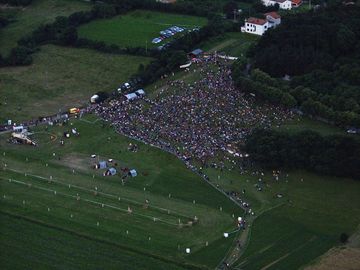 NOVICE 28. junij 2010 Spektakel iz zraka Kot so obiskovalci lahko opazili, je prizorišče med prireditvijo preletelo več letal. Med njimi tudi "letalska kvadriga". Pozneje pa tudi letalo v katerem je bil Primož Kosmač, ki je posnel nekaj fotografij iz zraka. Poglejte kako so spektakel videle ptice! |